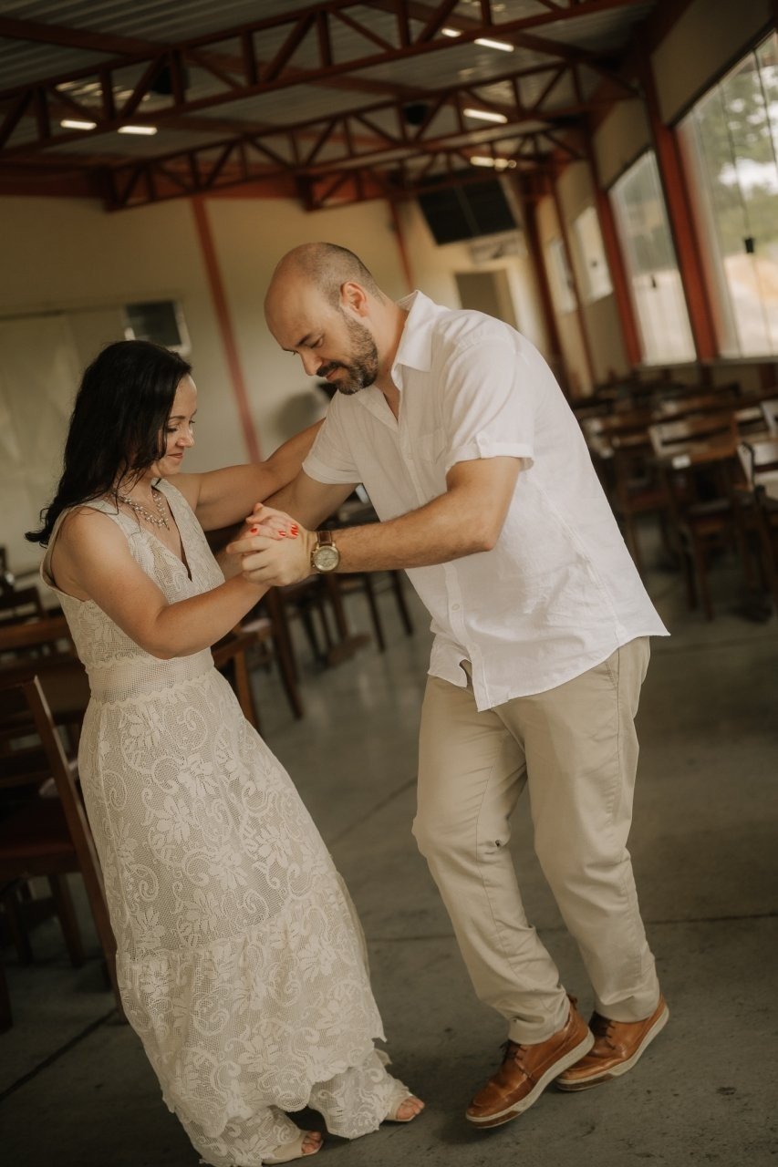 Em meio à música e à dança, trocamos olhares enquanto dançávamos com outras pessoas. Em um desses momentos, surgiu a oportunidade de dançarmos juntos. Foi simples e natural. Na troca de olhares, no ritmo da música e na leveza daquele encontro, nasceu uma química especial.